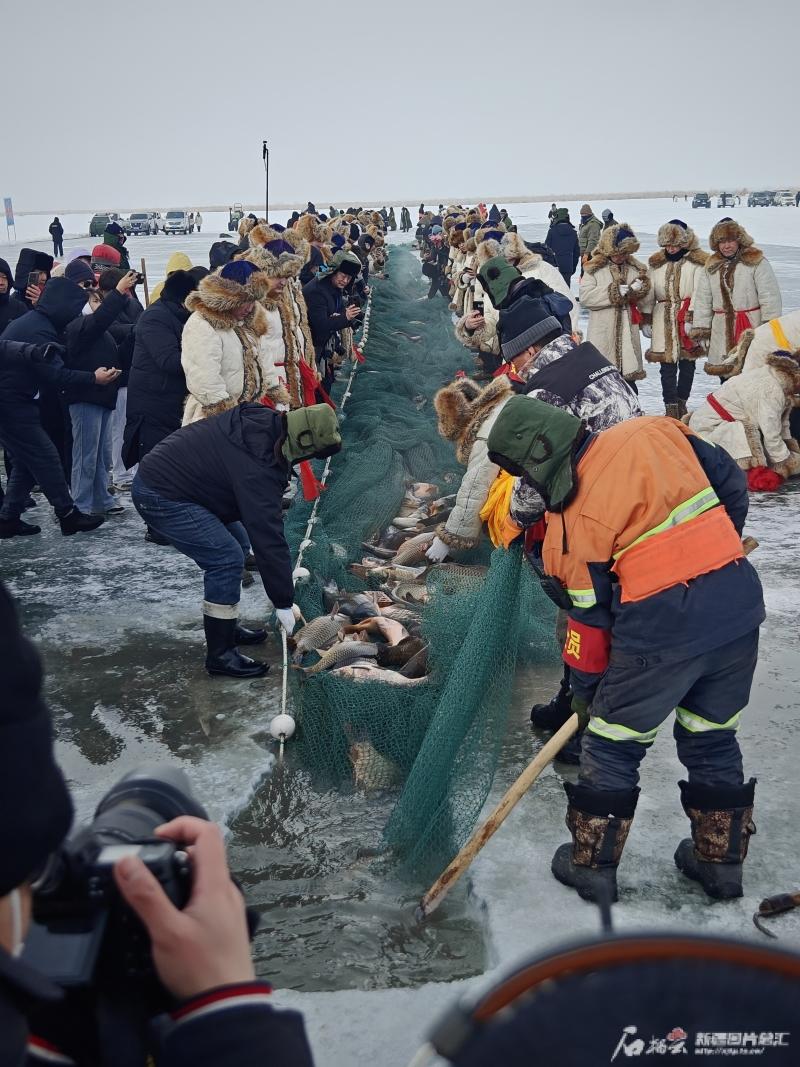第十八届乌伦古湖冬捕文化旅游节第一网鱼。苗学龙 摄