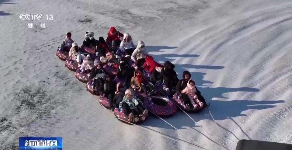 哈尔滨松花江冰雪嘉年华开发运营部部长 何礼:欢乐雪滑梯、超级冰滑梯,还有疯狂八爪鱼,还有旁边的雪圈极速漂移,这都是我们的明星项目,也是深受游客朋友喜爱的项目。