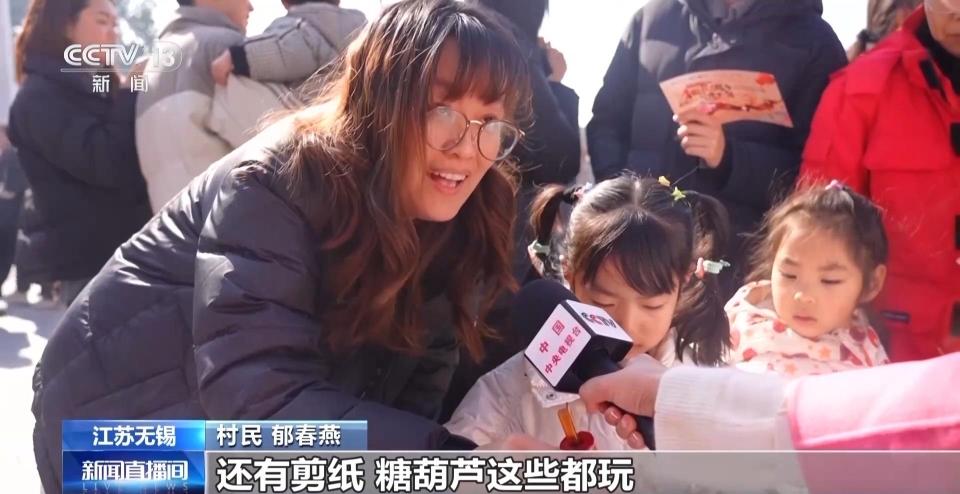 村民 郁春燕:我们小时候像这个糖画,还有剪纸、糖葫芦这些都玩,所以一有机会,我们就会带小朋友出来,参加这些活动。
