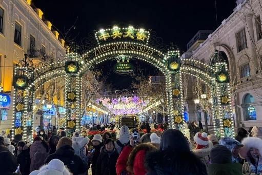 2024年12月26日,哈尔滨中央大街游人如织。新华社记者杨思琪 摄