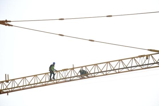 塔吊安装还有一大忌讳,那就是风。吴立成每天都会关注天气预报,查看风力级别。“下点小雨我们最多只是衣服淋湿,不要紧,但是有风就很危险。大风中,起重臂会产生非常大的扭矩力,严重时会发生倾覆。”他解释道。