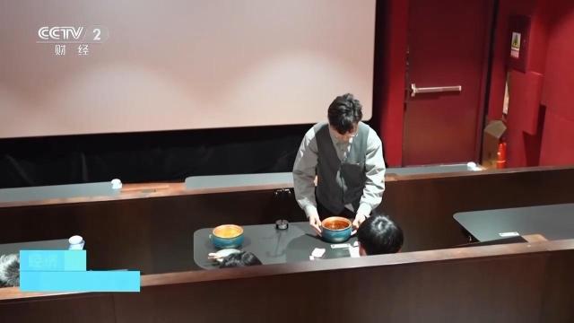 在江苏苏州的这家影院,不仅把餐桌、点餐二维码引入了影厅,还创新改造了一间专门的火锅影厅。记者采访时正值晚饭时间,观众取票入座,扫码点餐,就着热气腾腾的火锅看电影,别有一番风味。