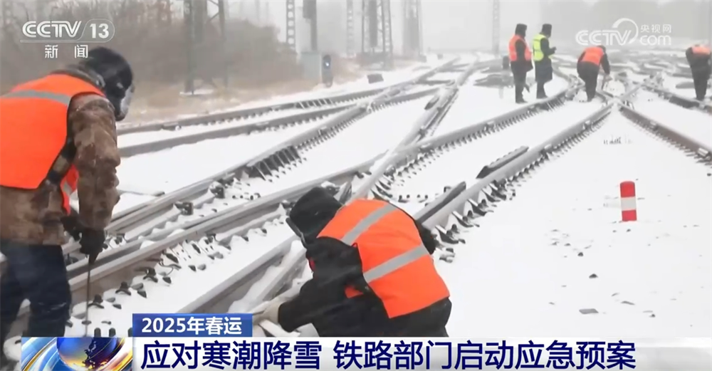 为应对寒潮降雪天气,各地铁路部门启动应急预案,全力保障春运畅通安全。国铁郑州局管内洛阳电务段,根据雪情及时启动道岔融雪加热装置,快速消融线路积雪。国铁济南局济南机务段加大对退乘机车的保洁力度,对受电弓、机车走行部、砂箱等部件进行重点检查,全力确保雨雪天气下的机车供应。为应对强降雪,作为东北与华北运输枢纽的山海关站,组织应急除雪突击队,对影响列车行驶安全的关键地点进行不间断除雪清扫,保障京哈铁路大动脉安全畅通。