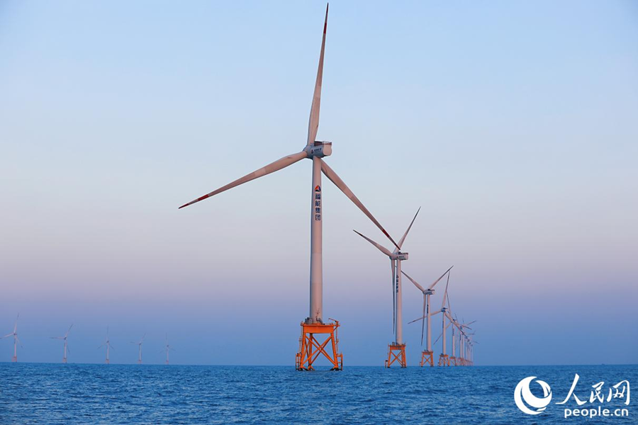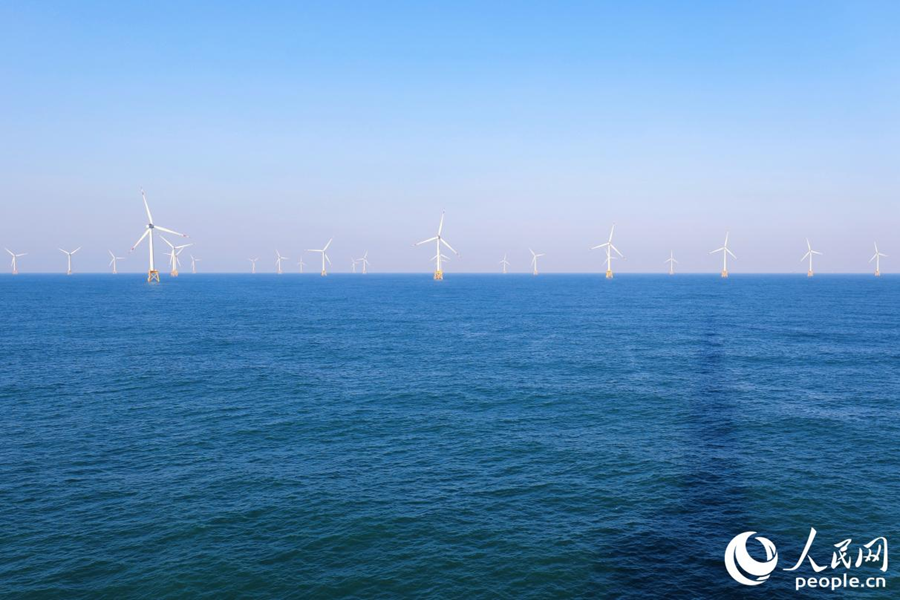 福建长乐以东近50公里洋面,湛蓝的海水一望无垠,一排排白色的“风车”鳞次栉比。