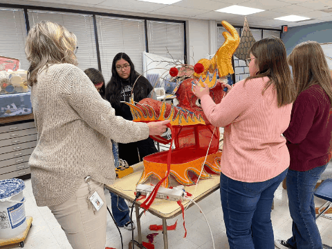 图为城南龙灯厂的工人们正在加紧赶制龙灯。