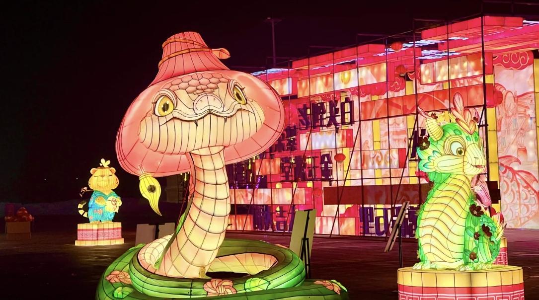 新疆兵团“蛇舞新春”国潮灯会在第十二师头屯河谷森林公园的花灯展示。 资料图