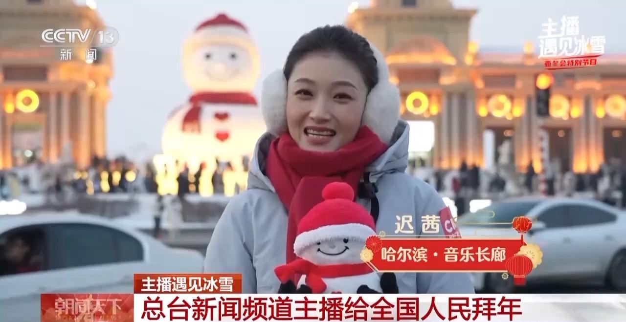大家过年好啊,我是迟茜。我现在在哈尔滨音乐广场,来到哈尔滨一定要到这里和大雪人一起打卡,我们一起听音符乐动在松花江旁,共赏冰雪华章。