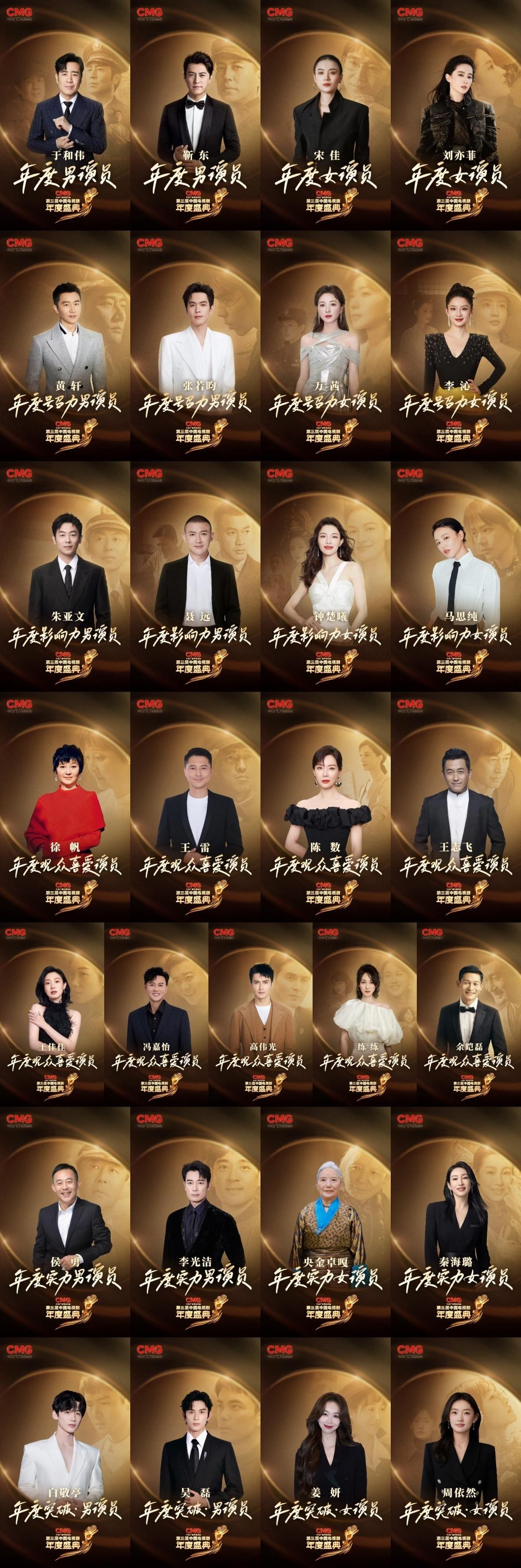 凭借深入人心的荧屏形象,演员于和伟、靳东,宋佳、刘亦菲赢得了观众和行业的高度认可,分别获得“年度男演员”“年度女演员”荣誉;颇具“观众缘”的黄轩、张若昀,万茜、李沁,分别获得“年度号召力男演员”“年度号召力女演员”荣誉;朱亚文、聂远,钟楚曦、马思纯以细腻的人物刻画唤起观众的广泛共鸣,分别获得“年度影响力男演员” “年度影响力女演员”荣誉;塑造出生动鲜活角色形象的徐帆、王雷、陈数、王志飞、王佳佳、冯嘉怡、高伟光、练练、余皑磊,获得“年度观众喜爱演员”荣誉;侯勇、李光洁,央金卓嘎、秦海璐以不着痕迹、润物无声的表演,分别获得“年度实力男演员”“年度实力女演员”荣誉;不断探索表演边界的白敬亭、吴磊,姜妍、周依然,分别获得“年度突破·男演员”“年度突破·女演员”荣誉。