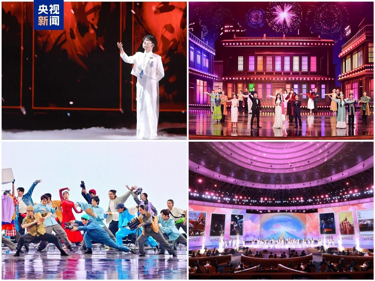 盛典现场,歌手周深唱响《借过一下》,再现剧中高光时刻。开场秀《“剧”在一起》巧妙地串联起过去一年热播剧中的名场面,主持人与台下演员载歌载舞、温暖互动,洋溢起幸福团圆的年味。舞蹈《造梦的人》生动呈现出中国电视剧的创作历程,向荧屏背后默默付出的幕后工作者致敬。在天使童声合唱团的歌声中,多部总台大剧海报逐一展现,凝聚起电视剧主创、观众的共同记忆,见证着中国电视剧行业“一路生花”。