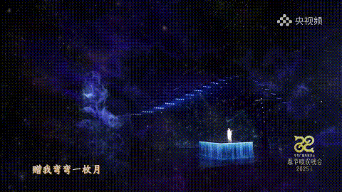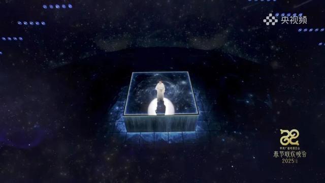 最终在春晚舞台上,歌手开场便置身于“天圆地方”的空间中,这是中国人对宇宙的朴素认知。随后,舞台借助科技幻化出漫天星云、流星雨等星象,将观众带入神秘的宇宙星空。象征生命之路的光环逐渐展开人物的生命剪影,点点星光拢聚起亲情、友情、爱情的存在痕迹。个体的齿轮在浩瀚星空中转动,依然能熠熠生辉,这是生命的不屈与坚韧,哪怕一瞬,也是永恒。