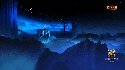 1号厅变幻的升降舞台,背屏地屏上的视觉呈现,再搭配上AR技术实现裸眼3D效果,观众所能看见的画面是这样的: