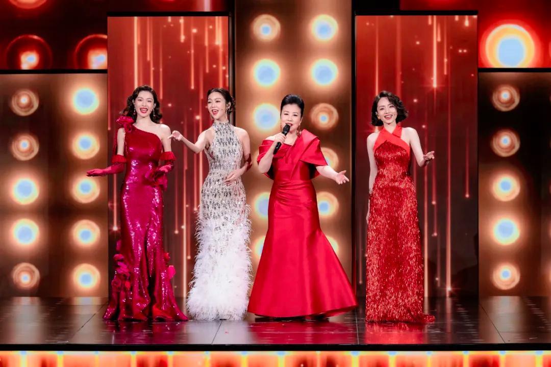 汪明荃的登场设计在幕帘升起之后的主舞台上,具有视觉冲击的“回忆杀”让现场的观众不禁眼泛泪花。几位晚辈歌手面向主舞台对唱,是传承粤语歌曲精神的具象化表达。