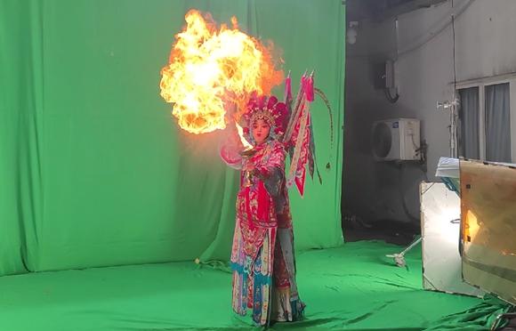 严芷怡向记者介绍道:“我们吐火有很多种形式。女演员一般是特定的角色和特定的要求才会吐火,且嘴里通常是含着松香粉末,这样火苗会比较小;或者,现在随着技术的发展,演员可以在嘴里衔着有开关的圆管,这样更安全、容易;还有一种,就是嘴里含着煤油,这种方式则更古老、原始,也更困难。”