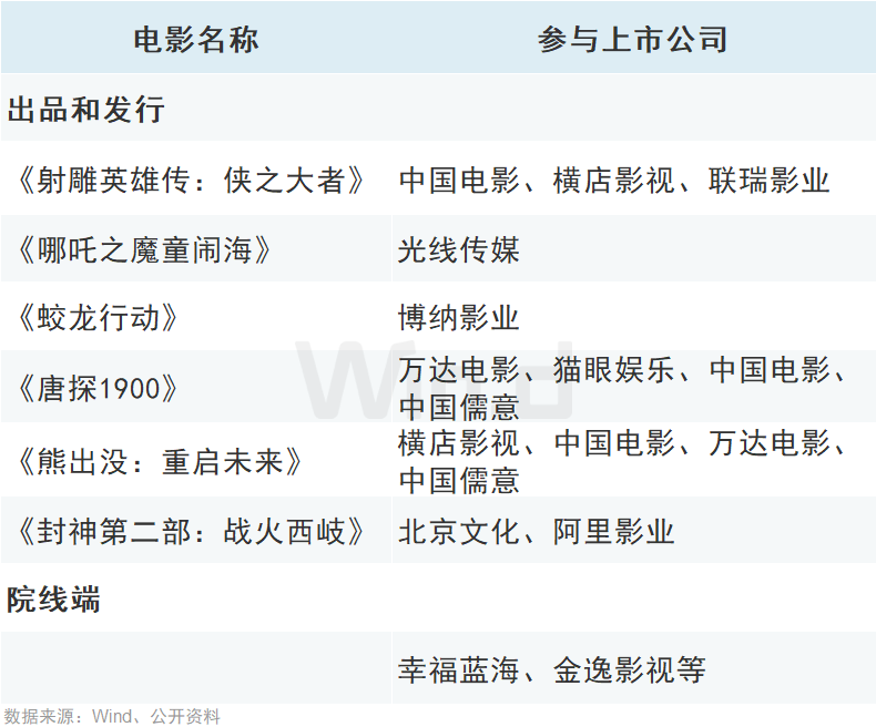 据公开资料整理,多家上市公司参与春节档电影出品、发行等: