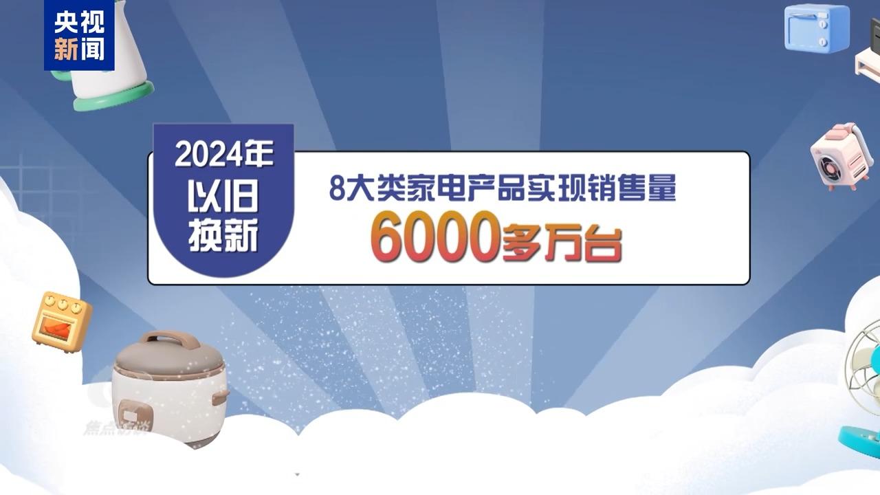好政策带来了好成效。以家电市场为例,2024年,中央加力支持以旧换新8大类家电产品实现销售量6000多万台,直接拉动消费超2600亿元。