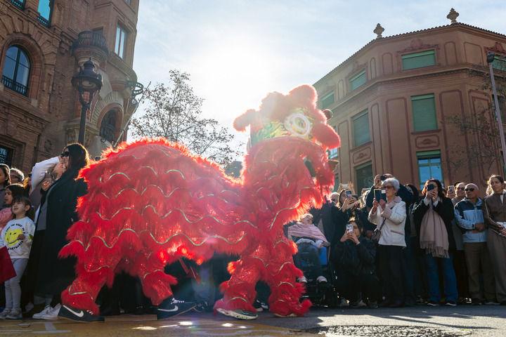 2025年1月25日,在西班牙巴塞罗那,演员在“与巴塞罗那共庆新春佳节”活动上表演舞狮。新华社发(胡安·戈萨摄)