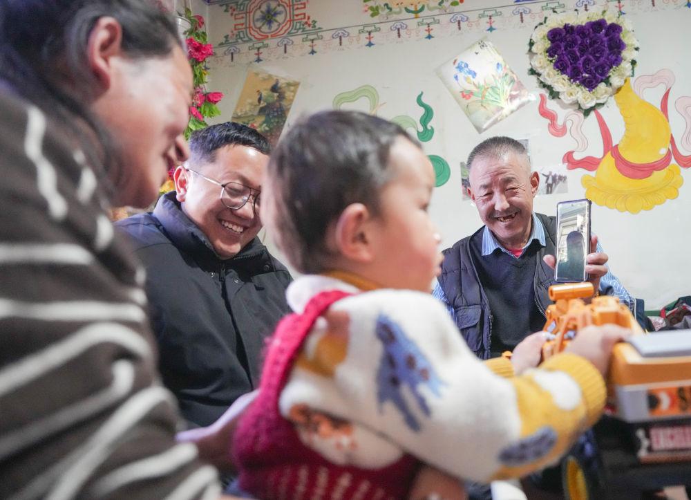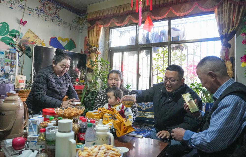 1月29日,孙建学叫上孙子和老家的家人视频拜年。新华社记者 晋美多吉 摄