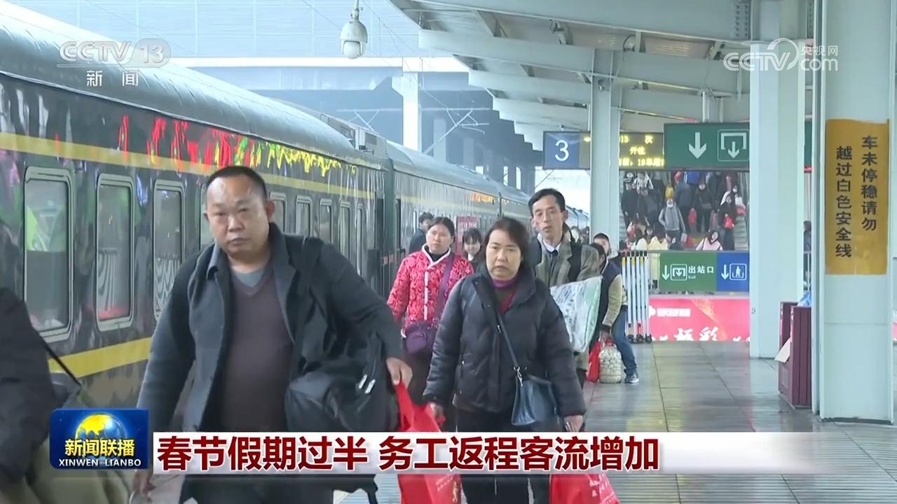 春节假期过半,务工客流增长明显。四川达州、河南南阳、湖北枣阳等务工客流集中地陆续开行务工专列。全国铁路2月1日预计发送旅客1330万人次,加开旅客列车791列。