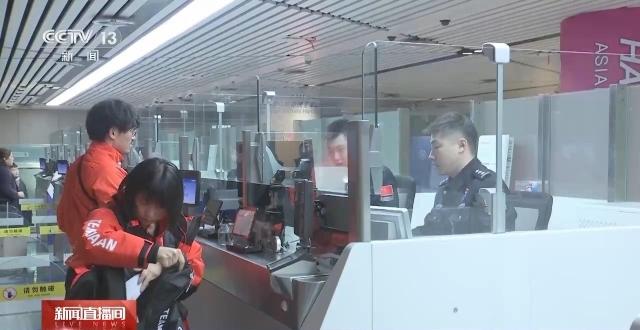 总台央视记者 王晨:这里是亚冬会入境专用通道,来自韩国、日本、新加坡、菲律宾等地的100多名参赛人员从这里入境。哈尔滨太平国际机场迎来亚冬会单日首个入境高峰。