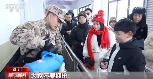 从春节前一直到正月十五,官兵们都会全时值守在景区各个交通枢纽和游客聚集的区域,金顶索道是峨眉山交通链的一个重要枢纽,高峰时游客能排起几百米甚至上千米的长队。