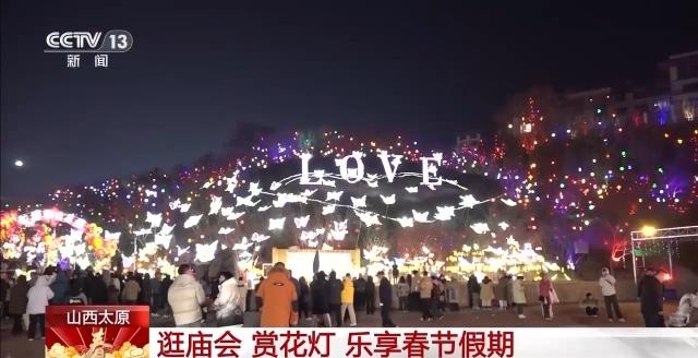 精彩的年俗表演、美丽的花灯,烘托出喜庆的节日氛围。在山西太原,人们逛庙会、赏花灯,乐享春节假期。