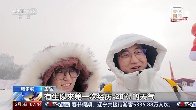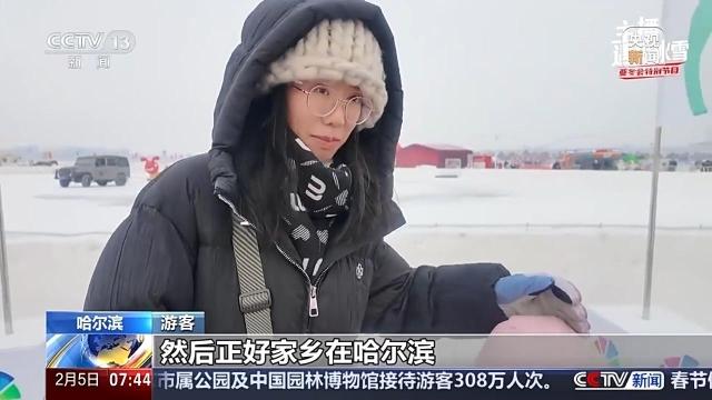 游客:一方面小朋友没有怎么见过雪,另一方面觉得可能北方年味更浓一点,过来正好赶上这次盛会,也觉得非常荣幸。因为其实在浙江也有很多室内滑雪场,然后也会去玩,但是像这样纯天然的在江面上去玩,是第一次。