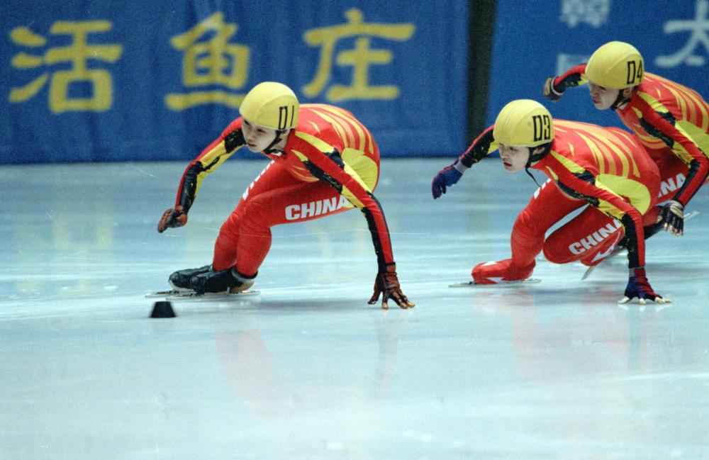 在第三届亚冬会上,世界冠军王春露(前)夺得500米短道速滑冠军,并和队友合作夺得女子短道速滑3000米接力赛的冠军。