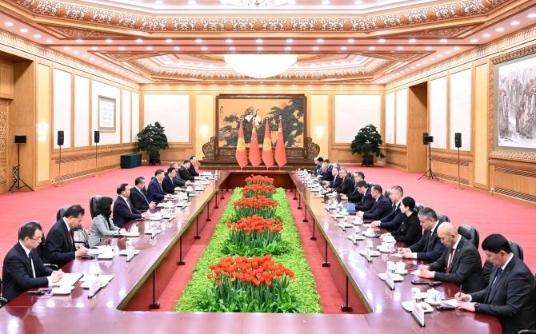 习近平指出,中国和吉尔吉斯斯坦山水相依、民心相亲,是好邻居、好朋友、好伙伴。近年来,中吉关系实现跨越式发展,达到新时代全面战略伙伴的新高度。双方政治互信持续巩固,各领域合作喜讯频传,构建中吉命运共同体的社会和民意基础日益牢固。中方支持吉方走符合本国国情的发展道路,愿同吉方深化发展战略对接,扩大治国理政经验交流,推进全方位互利合作,携手维护两国共同利益,推动中吉命运共同体建设更好落地走实。