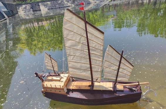 翟俊正的船模在水中航行(央广网发 受访者供图)