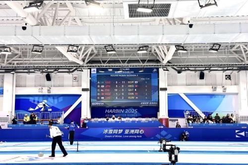 4日,第九届亚冬会冰壶比赛在哈尔滨平房区冰壶馆开赛,呐喊声和欢呼声响彻馆内。据了解,秉持“绿色、共享、开放、廉洁”的办赛理念,2025年哈尔滨亚冬会冰上项目5个场馆全部利用原有场馆及设施升级改造完成。