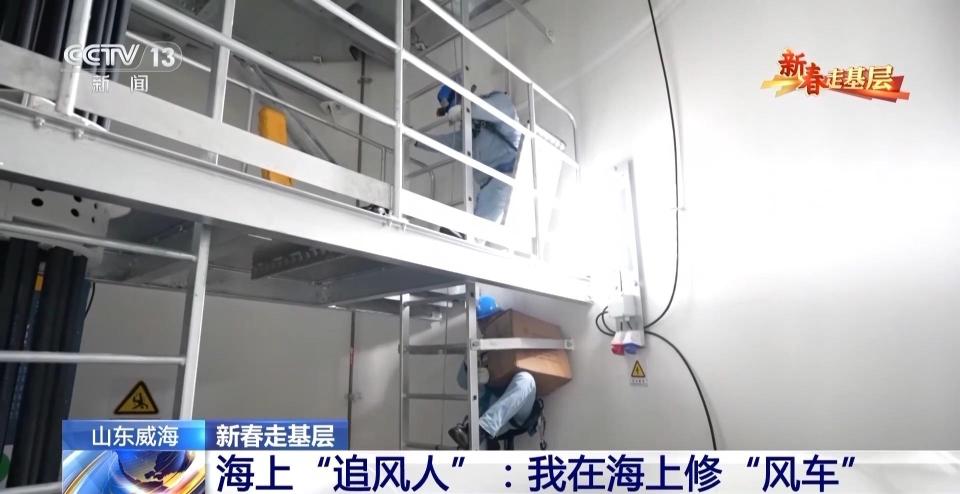 海上风电运检员 刘慧:爬得多了。每年两三百次,十年了得两三千次了。小心脚下,滑下去了就把脚扭伤了。