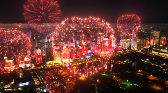 多款专属高空礼花弹将展示包括特型“I♥HK(我爱海口)”银蛇跑动、椰树、三角梅等图案。