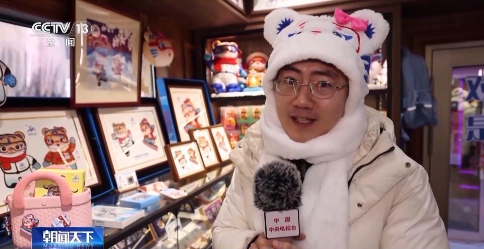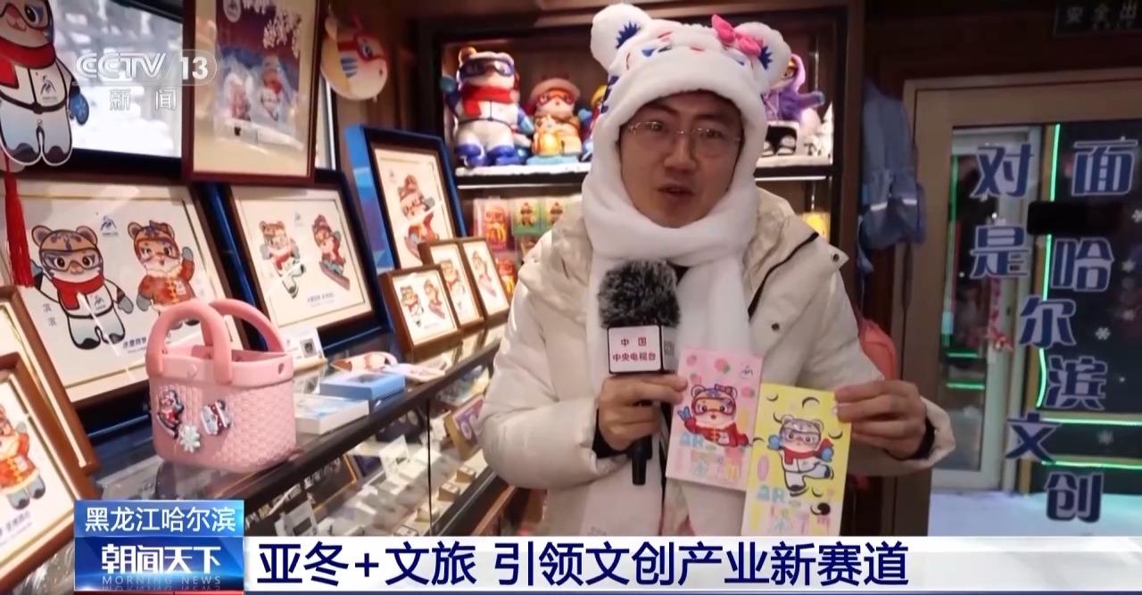 总台记者 张程:我现在就位于中央大街二号的亚冬文创产品专营店,随着亚冬会的脚步渐行渐近,同时现在本就是哈尔滨的冰雪文旅旺季,这里几乎每天都是游人如织、摩肩接踵。而其中有很多爆款文创产品,现在已经几乎卖到脱销。