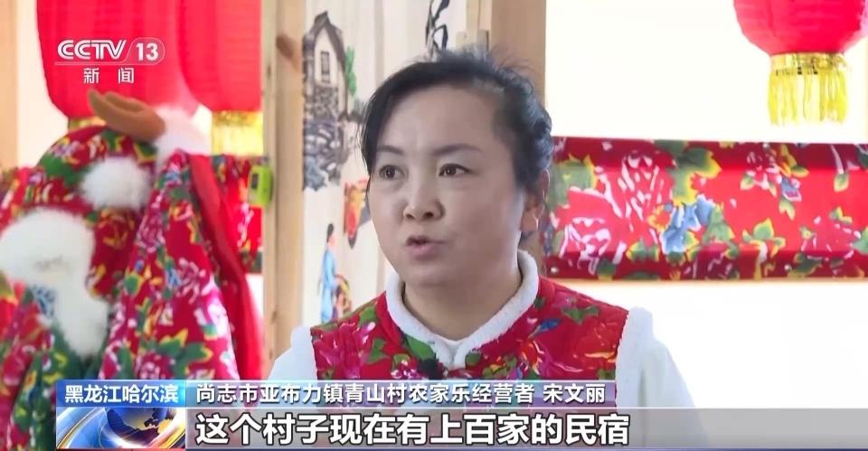 尚志市亚布力镇青山村农家乐经营者 宋文丽:这个村子现在有上百家民宿,尤其从去年开始到今年,有很多老百姓原先自己住的房子,都改成民宿了。原先都是靠种地等等来维持生活,但是现在都做民宿、餐饮了,干啥都有了,比原先还赚钱了。