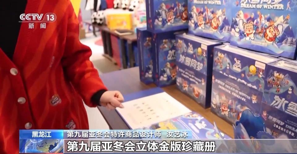 第九届亚冬会特许商品设计师 汝艺冰:第九届亚冬会立体金版珍藏册,第一大主题,就是我们的双亚冬之城主题,前面就是我们的1996年第三届亚冬会以及2025年第九届亚冬会。那第二个板块,就是我们的奥运冠军之城主题,是2022年6月份授予哈尔滨的荣誉称号。