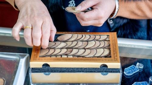 吉林省辽源市一鹿产品店内,工作人员正在分装鹿茸片礼盒。(1月17日摄)新华社记者 唐成卓 摄