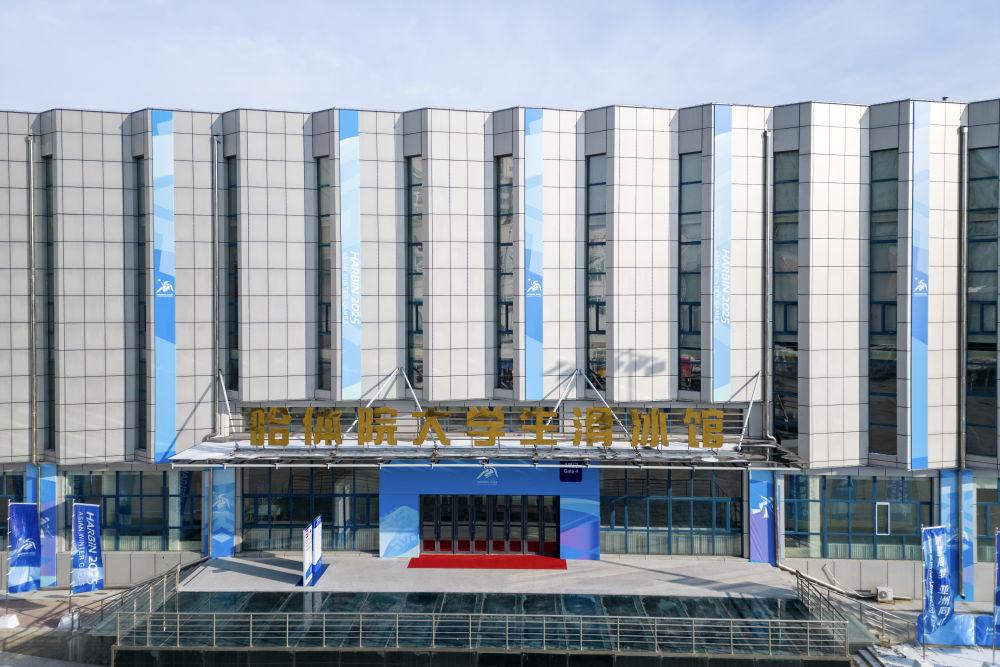 这是2025年1月27日拍摄的哈尔滨体育学院大学生滑冰馆(女子冰球比赛场馆)。