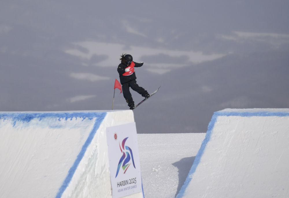 2月8日,李方慧在比赛中。当日,在第九届亚冬会自由式滑雪女子U型场地技巧决赛中,中国选手李方慧获得金牌,这是中国体育代表团在本届亚冬会上的首枚金牌。新华社记者 夏一方 摄