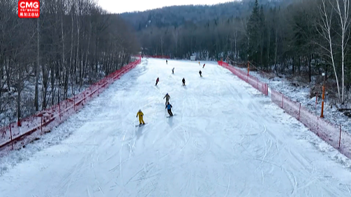 随着气温逐渐走低,海林市横道河子镇的威虎山横道滑雪场游客激增。雪道上,滑雪爱好者们身着滑雪服,脚踏雪板,在山顶飞驰而下,激起团团白色雪雾。