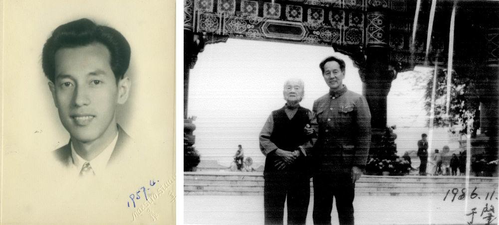 这是一张拼版照片:左图为1957年春拍摄的黄旭华;右图为1986年冬拍摄的黄旭华与母亲的合影。新华社发