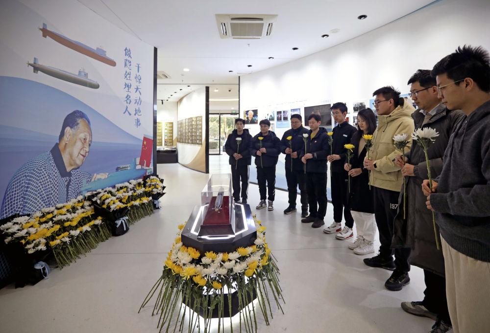 2月8日,黄旭华吊唁仪式在第七一九研究所总体楼二楼大厅设置的灵堂举行。新华社记者熊琦 摄