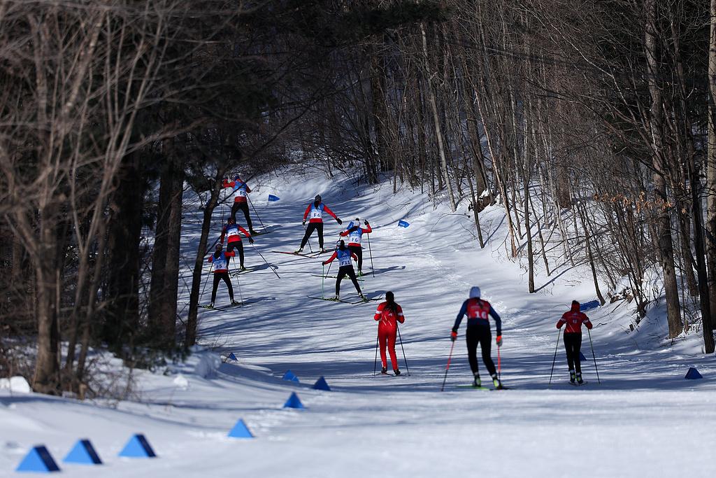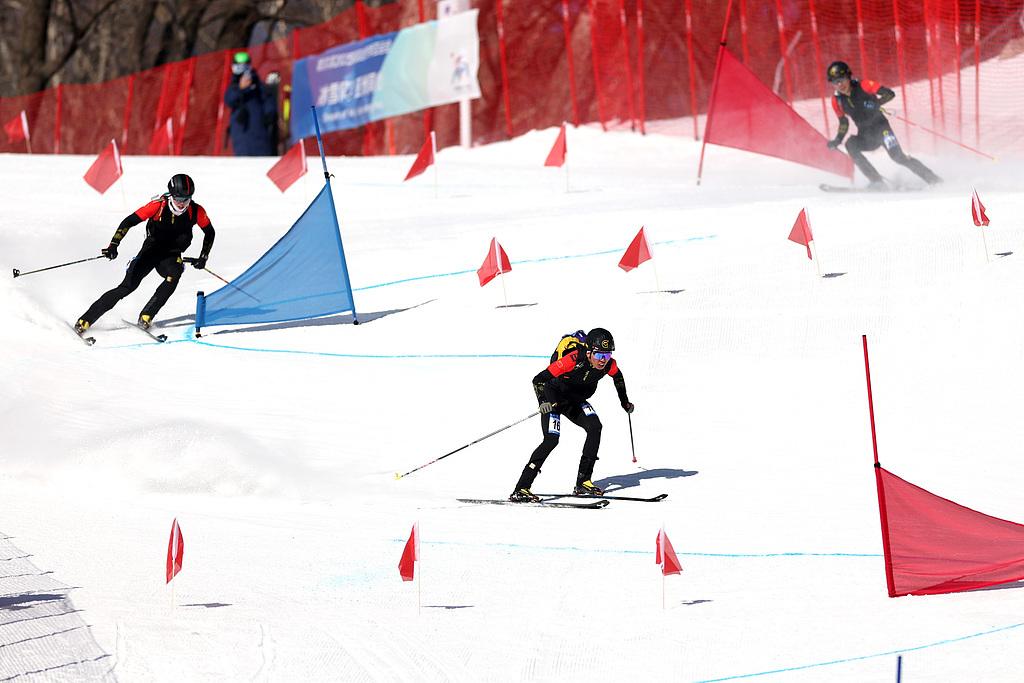 △2025年2月9日,哈尔滨亚冬会滑雪登山男子短距离决赛在亚布力滑雪场进行。