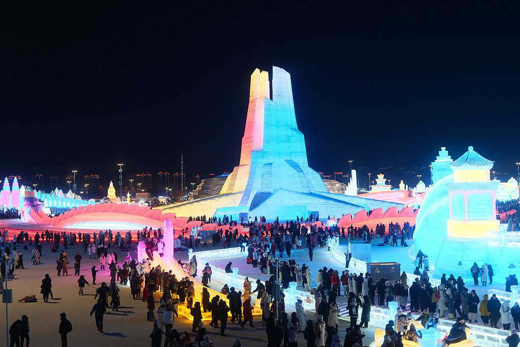 △2025年2月8日,哈尔滨市冰雪大世界景区游人如织。
