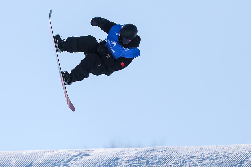 △2025年2月10日,哈尔滨亚冬会单板滑雪男子大跳台决赛中的杨文龙。