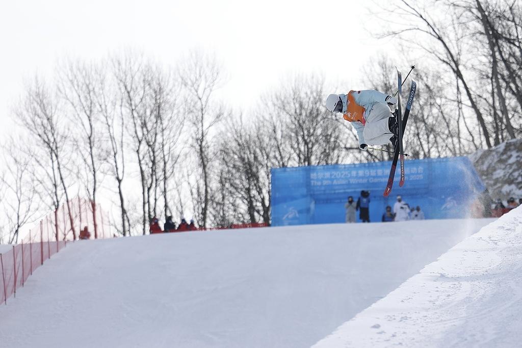 △2025年2月8日,在哈尔滨亚冬会自由式滑雪女子U型场地技巧决赛比拼中,中国队选手李方慧夺得冠军。