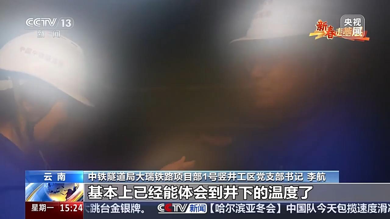 中铁隧道局大瑞铁路项目部1号竖井工区党支部书记 李航:现在看到我眼镜已经起雾了,基本上已经能体会到井下的温度了。