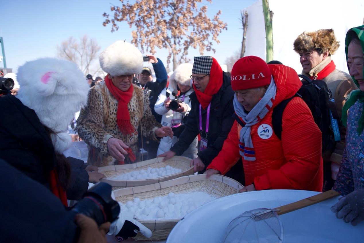 外国嘉宾们在零下20摄氏度的雪地上饶有兴致地摇着元宵,祈愿“摇”出幸福团圆年。