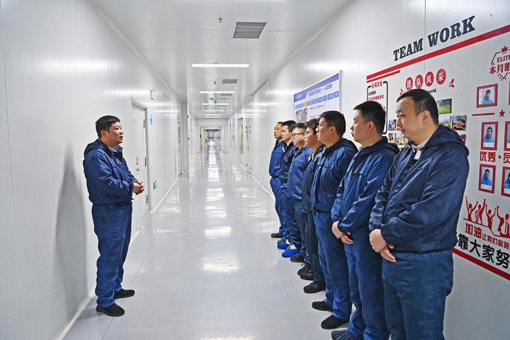 8:00,记者和王东林一起换上防尘服和鞋套,戴上口罩后,通过除尘通道进入车间内部。