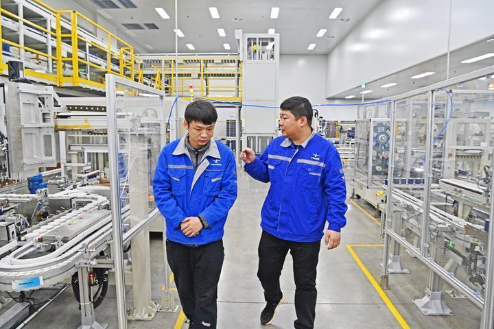 29岁的车间班组长刘洪恩在动力电池生产一线岗位已工作10年,是王东林的徒弟。师徒两人调出近期生产数据,对不同时段温度、压强等进行对比分析,讨论改进工艺的方案。“这个岗位考验对数据的分析和整理能力,每天都有细节可以改进,工作不枯燥。”刘洪恩说。