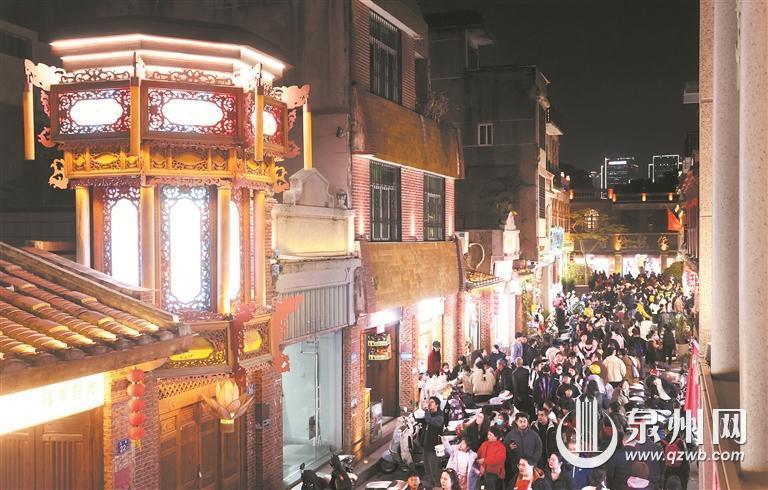 昨日夜幕降临,鲤城古城区内华灯初上,流光溢彩的景观树上灯笼高高挂起,底蕴悠长的古街巷人头攒动,一片浪漫祥和的节日氛围。徜徉其中,不少游客直呼,漫步古城街巷和历史古迹,总能与文化“撞个满怀”。